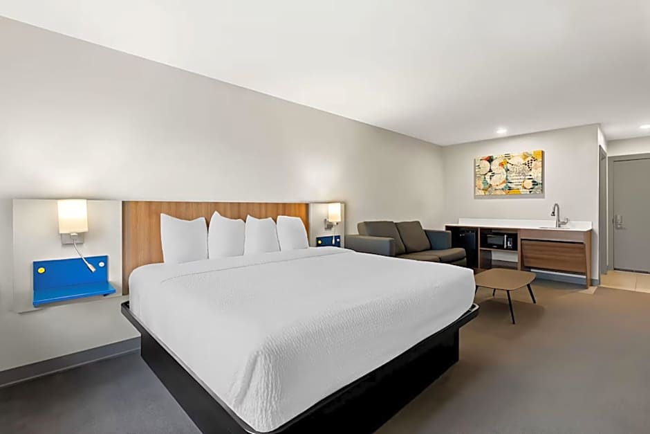 Featuring free toiletries, this suite includes a private bathroom with a shower and a hairdryer. The suite's kitchenette, which features a refrigerator and a microwave, is available for cooking and storing food. The suite has carpeted floors, a seating area with a flat-screen TV with cable channels, air conditioning, a tea and coffee maker, as well as a wardrobe.